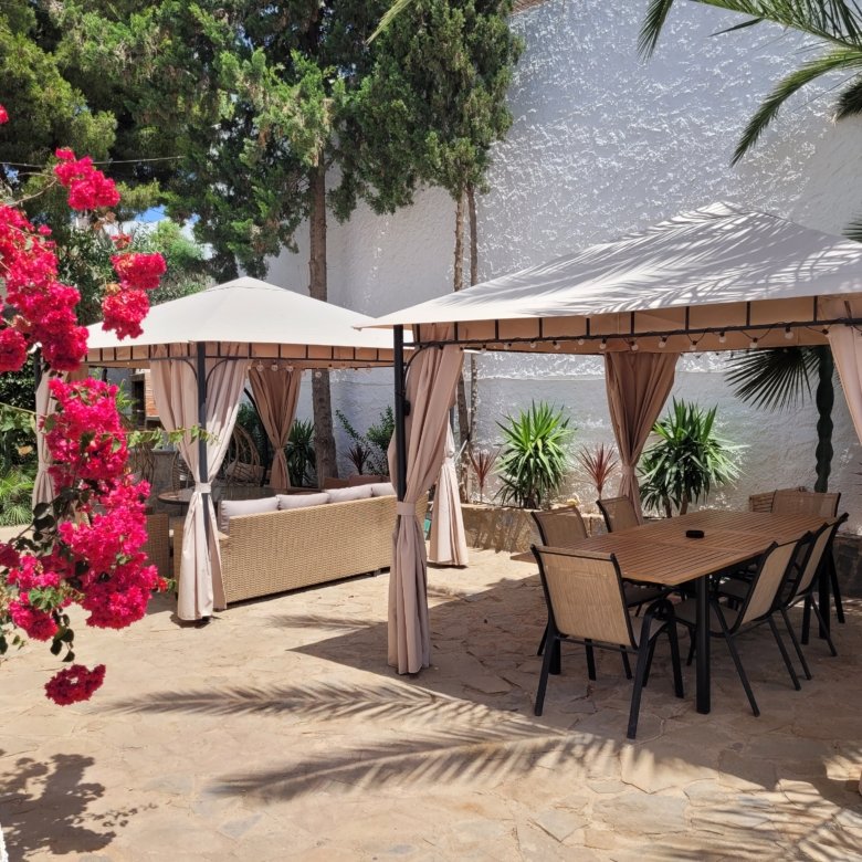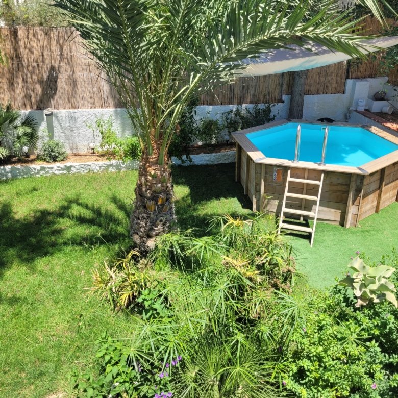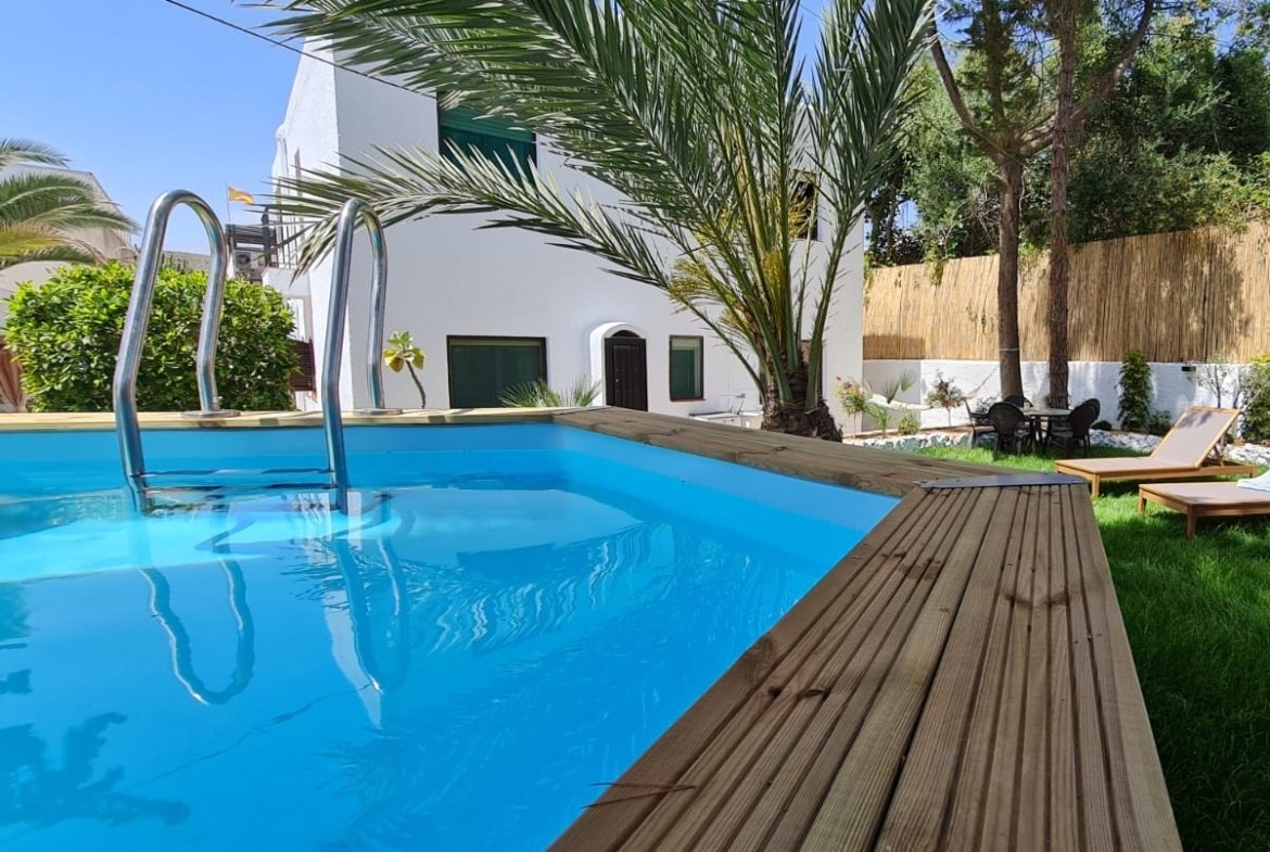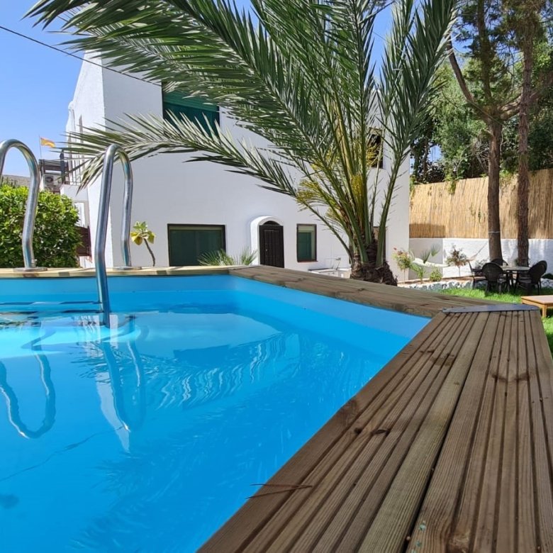 El edificio cuenta con dos apartamentos independientes que comparten un agradable jardín con diferentes espacios: una pequeña piscina, zona de estar y comedor exterior sombreado y barbacoa