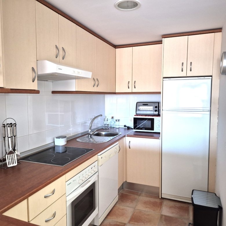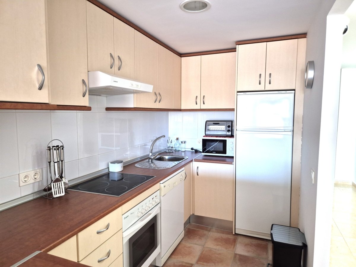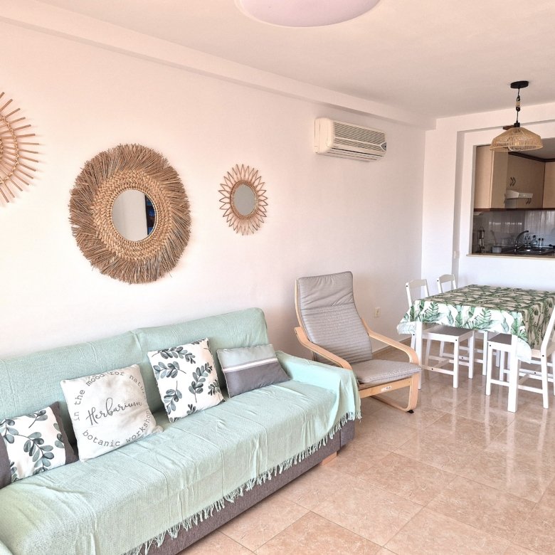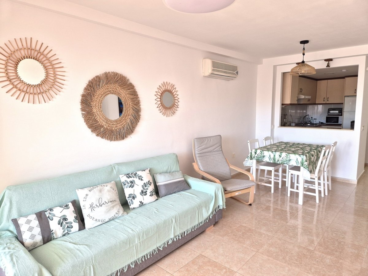 Recientemente amueblado, el apartamento cuenta con una agradable terraza, plaza de garaje, conexión WiFi y ventiladores de techo y aire acondicionado tanto en el salón como en las habitaciones, garantizando confort durante todo el año.
