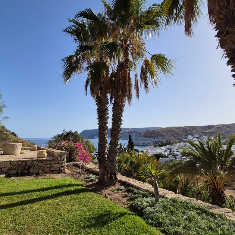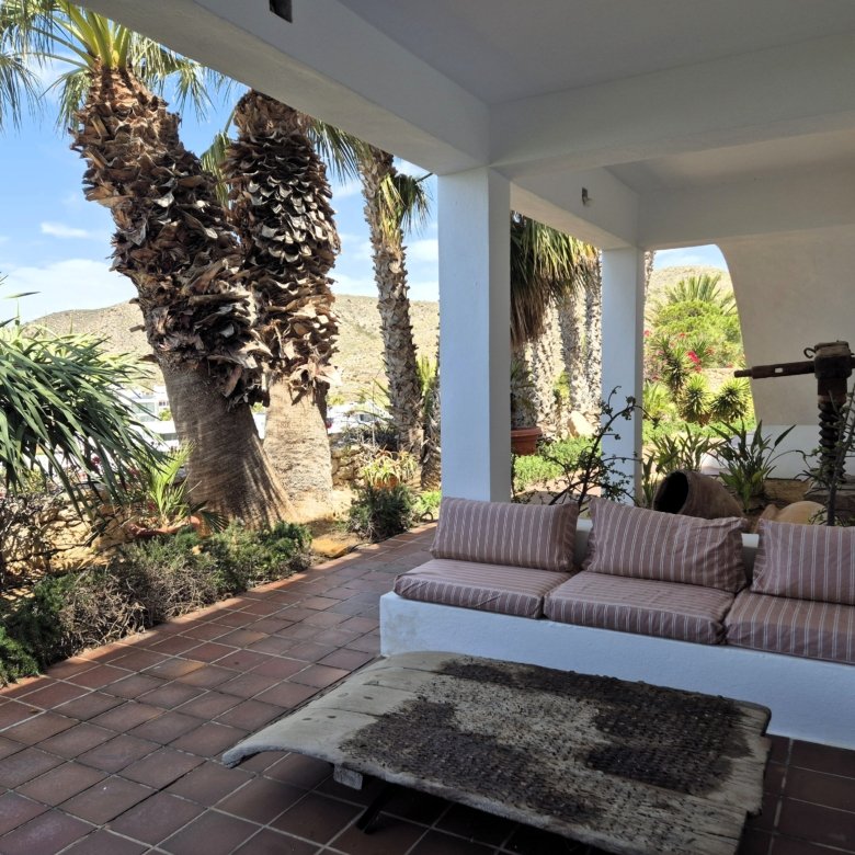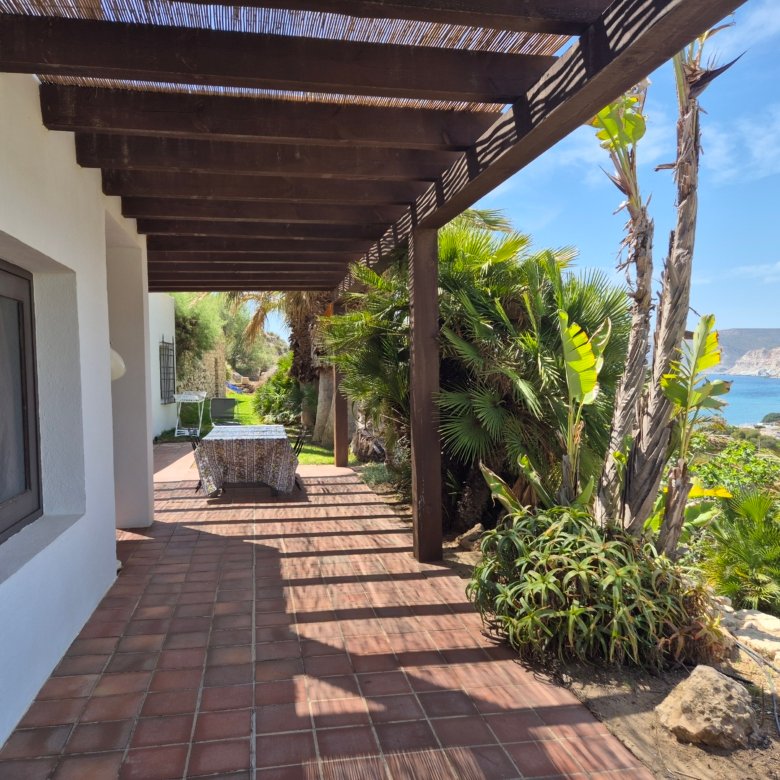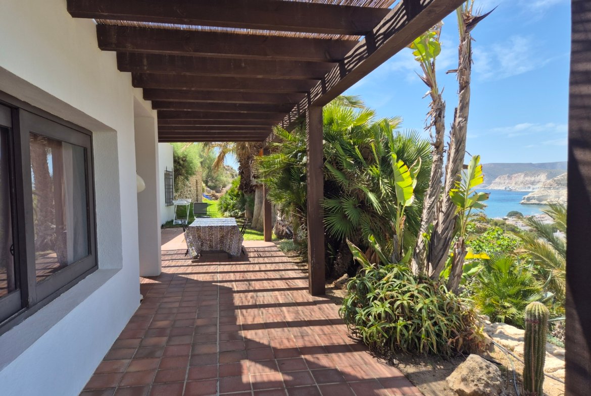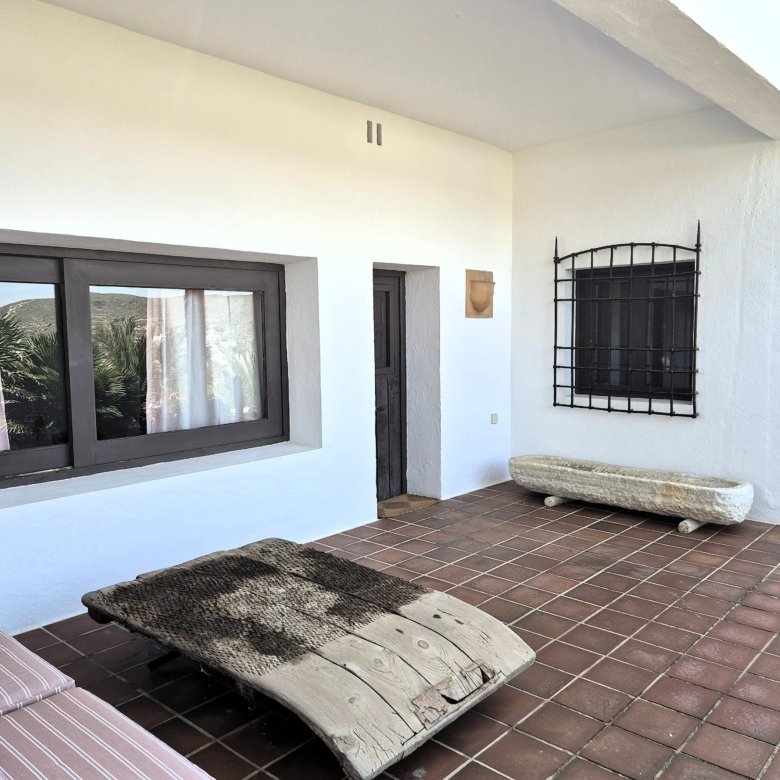 Situada en el punto más alto de la zona, esta propiedad se compone de una vivienda principal y de esta casa de invitados, disfrutando ambas de total privacidad. Desde ellas se pueden contemplar unas espectaculares vistas al mar y a la costa del Parque Natural de Cabo de Gata, siendo imprescindible disfrutarlas con la puesta del sol.