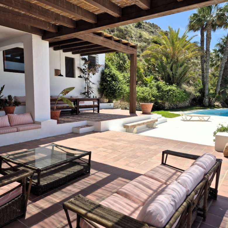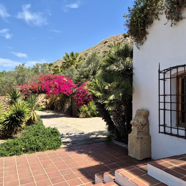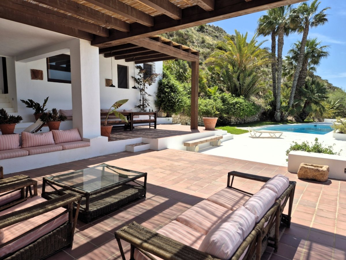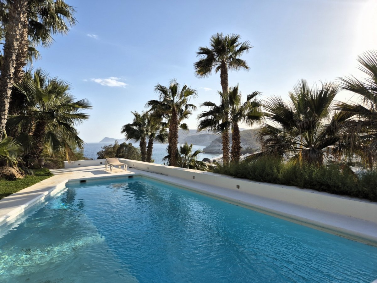 Ubicada en la ladera de una montaña, al final de una calle sin tráfico, esta exclusiva propiedad ofrece un entorno de absoluta tranquilidad a menos de 300 metros de la playa y del centro del encantador pueblo de Agua Amarga.