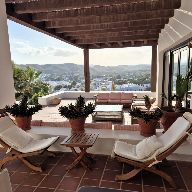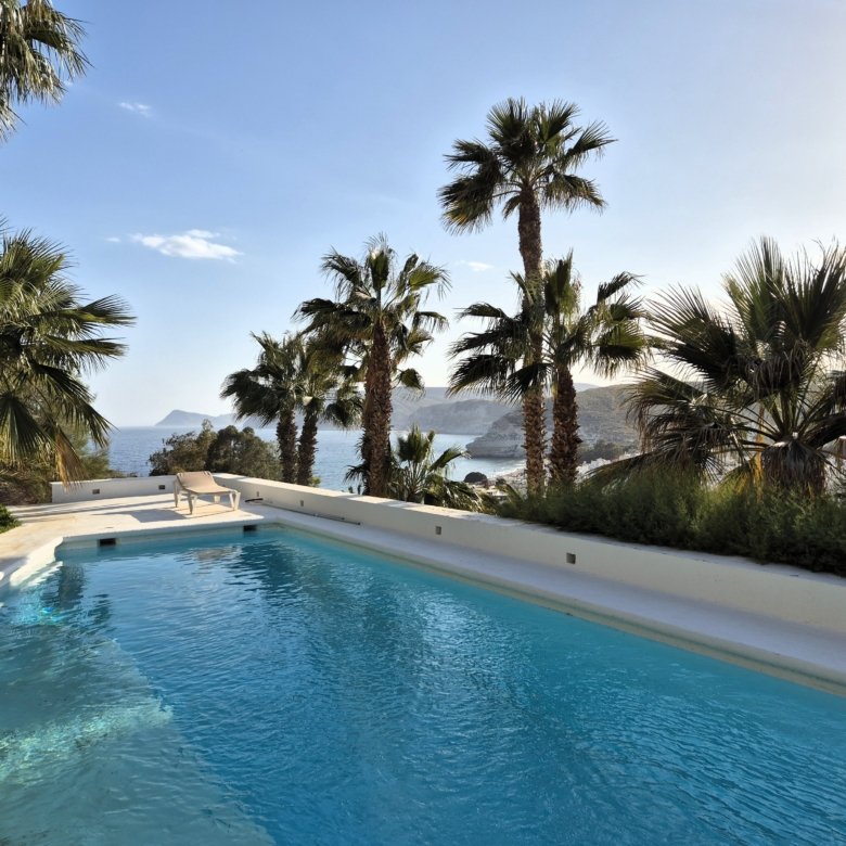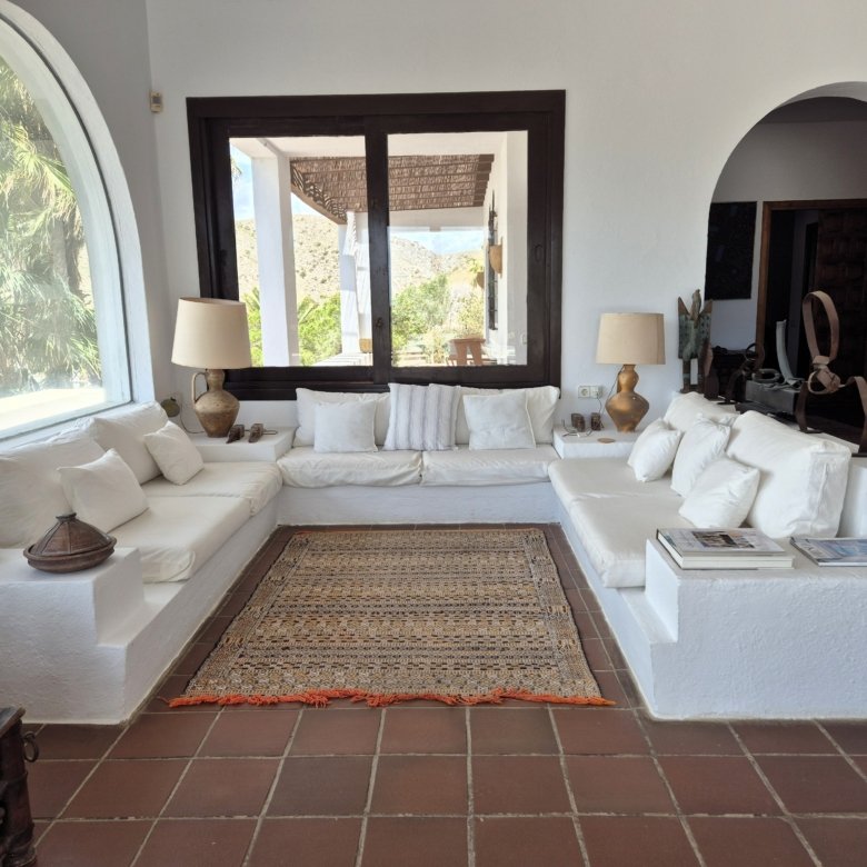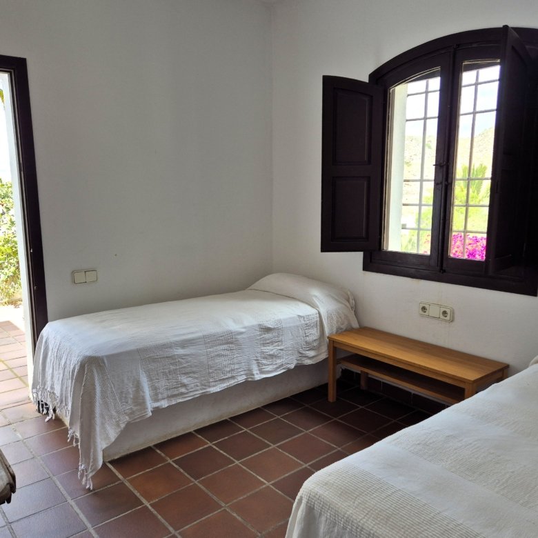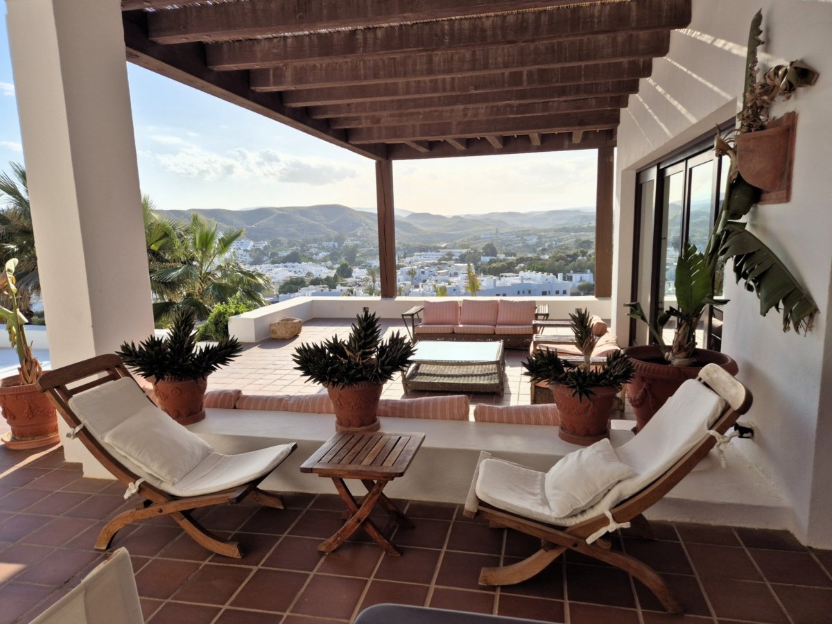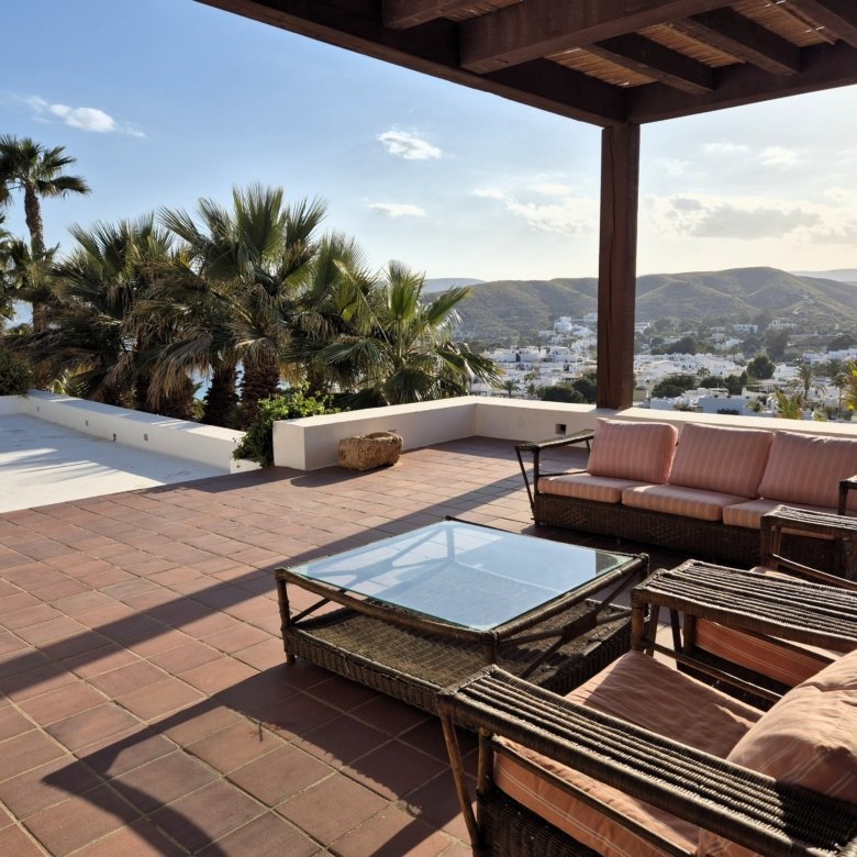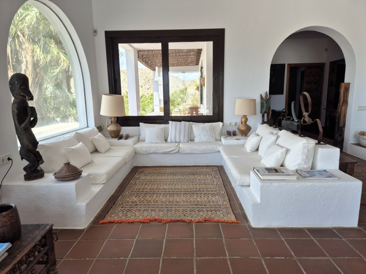 Situada en el punto más alto de la zona, esta propiedad se compone de esta vivienda principal y de una casa de invitados, disfrutando ambas de total privacidad y pudiendo alquilarse ambas en conjunto. Desde ellas se pueden contemplar unas espectaculares vistas al mar y a la costa del Parque Natural de Cabo de Gata, siendo imprescindible disfrutarlas con la puesta del sol.