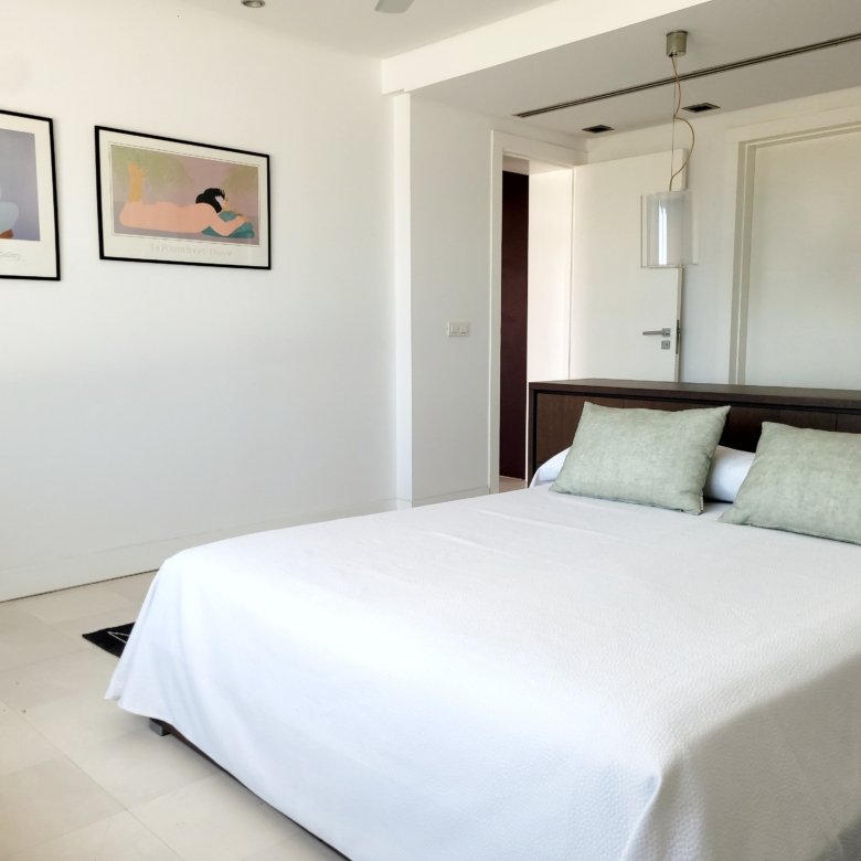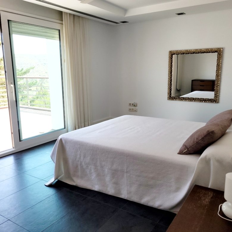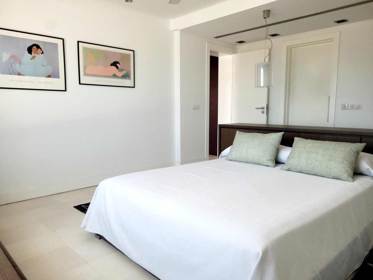 - Habitación con cama de matrimonio. Vestidor, baño en suite y acceso a la terraza
